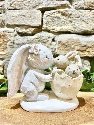 Adorable mummy bunny with her babies inside an egg shell! Pastel colours and perfect for spring time displays!