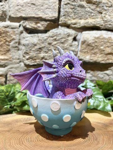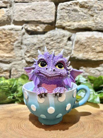Brightly coloured super cute baby dragon in a teacup! With lots of wonderful detail and character.