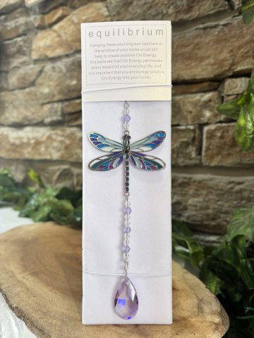 A beautifully crafted silver dragonfly pendant with coloured crystal suspended on a 20cm silver chain with S clip fastener.
