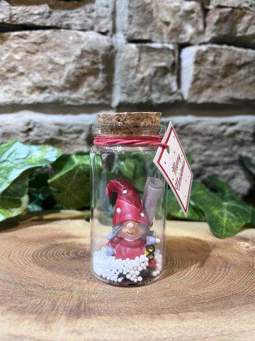 Super sweet glass jar & cork lid with festive gonk inside and a scroll to write your Christmas wish!