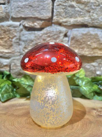 Bright red classic toadstool battery operated light. Made from fine glass, batteries included.