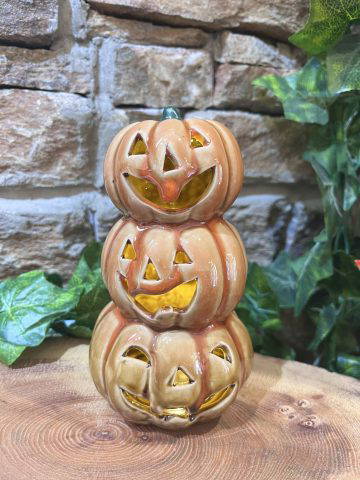 Cute yet spooky ceramic stack of pumpkins with led light, requires 2 x LR44 batteries supplied.