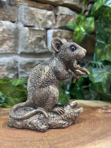 Wonderfully detailed woodland mouse with wild flower! Bronze effect resin ornament.