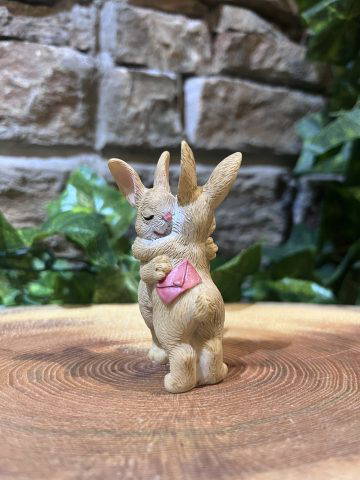 Super cute little resin bunnies sharing a cuddle with one holding a red envelope of love!