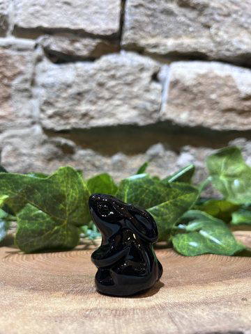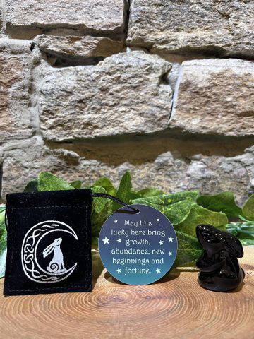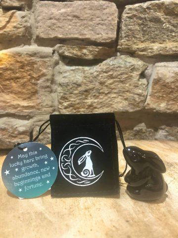 Beautiful glass hare standing at 4cm tall, presented in a black velvet drawstring bag with inspiring words. Perfect little gift for someone needing luck and guidance.