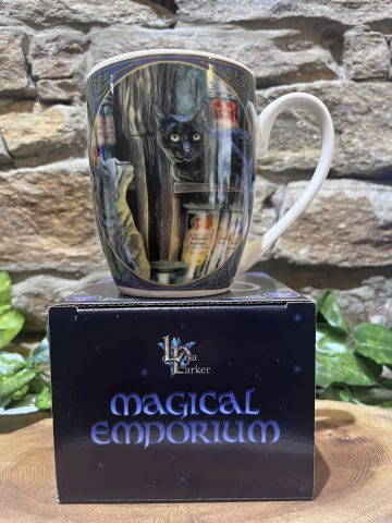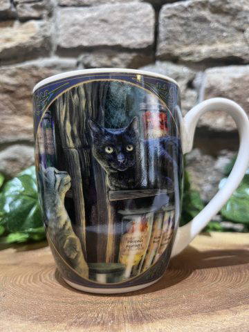 Magickal cat designed porcelain mug. Dishwasher safe.