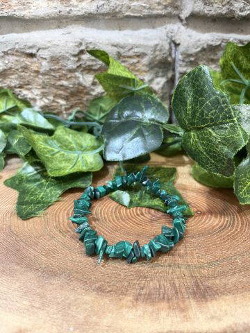 Malachite helps with dream interpretation whilst balancing emotions, it is good for depressive or low moods. A wonderful crystal for transformation and positive change. Pretty chips of Malachite crystal threaded on a durable elastic bracelet