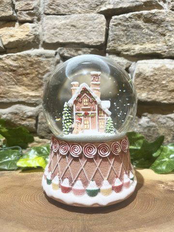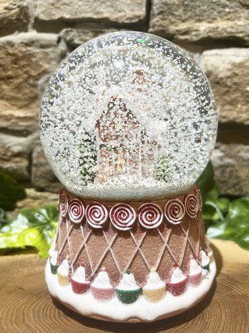 super sweet candy decorated musical gingerbread house snow globe which plays “we wish you a merry Christmas” when wound up at the base.
