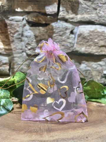 Pink Heart Organza Bag 10cm