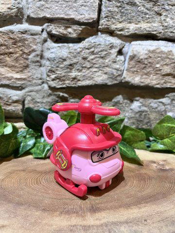 Brightly coloured helicopter with rubber wheels, simply push down the top and watch it go!