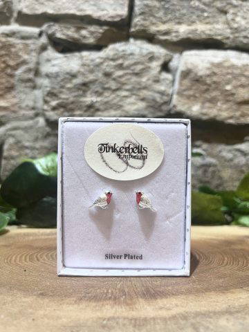 Beautiful little red breasted robin stud style earrings. plated in real silver. Comes boxed.