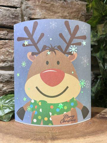 Colour changing light up latern which sits free standing. Bright reindeer design. Requires 2 x AA batteries. Comes boxed.