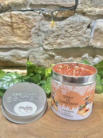 Festive sparkling cinnamon, clove and orange candle! Over 50 hours burn time. Vegan friendly.