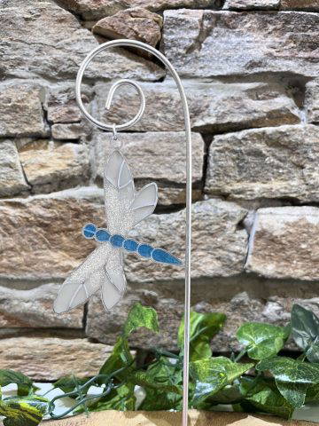 Pretty stained glass effect suncatcher on a 25cm metal stake to place it directly into the ground or as a decoration for a plant pot to bring the magick of nature to your space. Created for outdoor use.