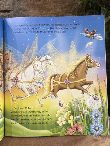 There’s a sparkle of excitement in Fairy Glen, it’s almost time for the Midsummer Ball and the fairy horses are eager to find out which one of them the Fairy Queen will pick to pull her Golden Coach. Cobweb desperately wants to be chosen but as she is not as graceful as the other horses her dream seems out of reach..