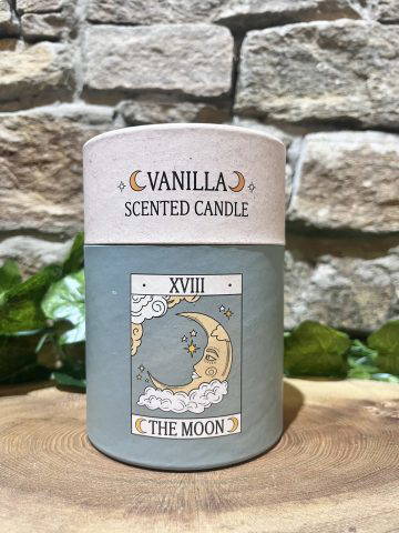 Tarot inspired glass candle with sweet vanilla scent. Burns for approx 40 hours.