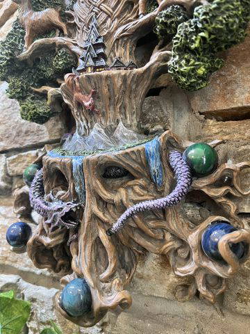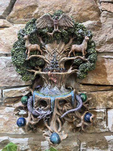 Wonderfully detailed large wall plaque depicting the Norse Myth Yggdrasil, the sacred ash tree that holds the universe together, home of the 9 realms. Wall mount to the back to hang.